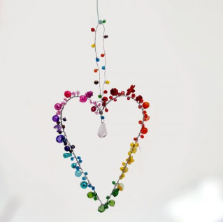 Décoration Cœur Pailleté arc-en-ciel 9x12